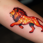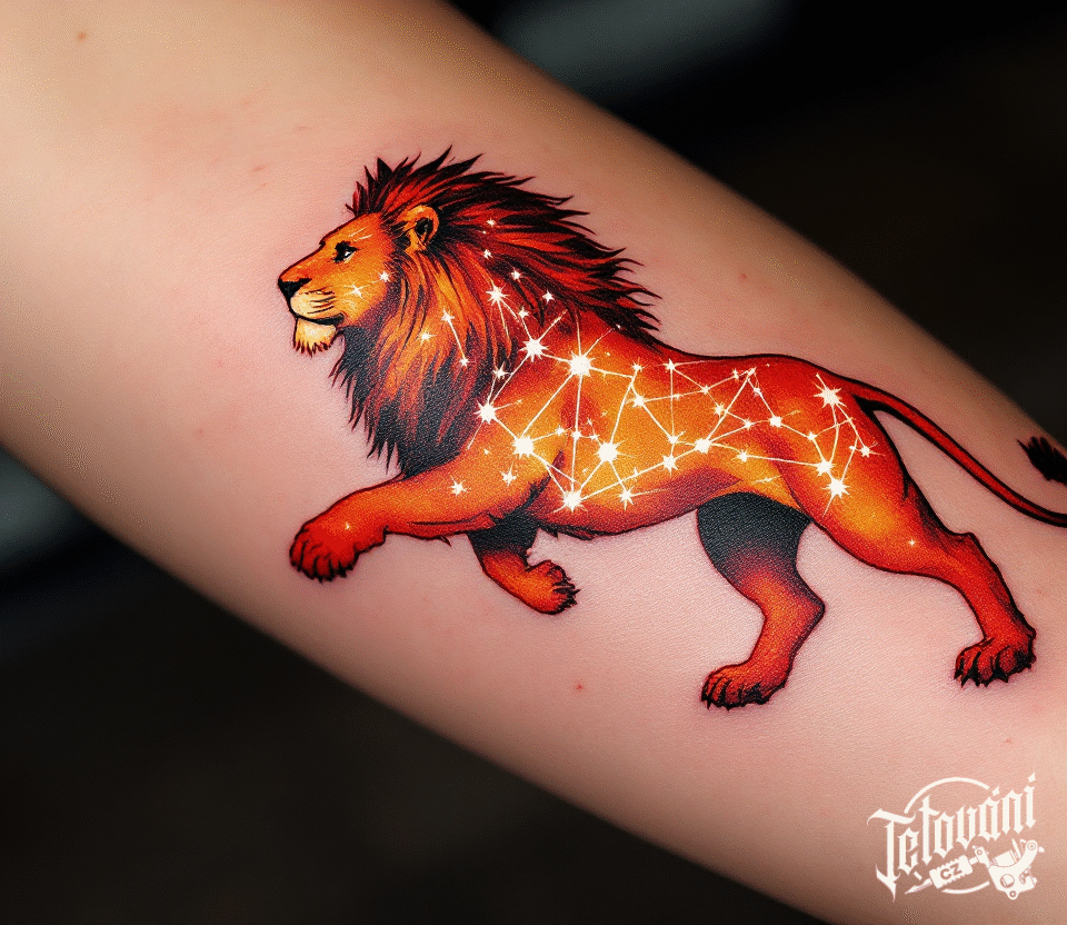 Tetování zvíře, lev znamení zvěrokruhu, souhvězdí lva na ruce