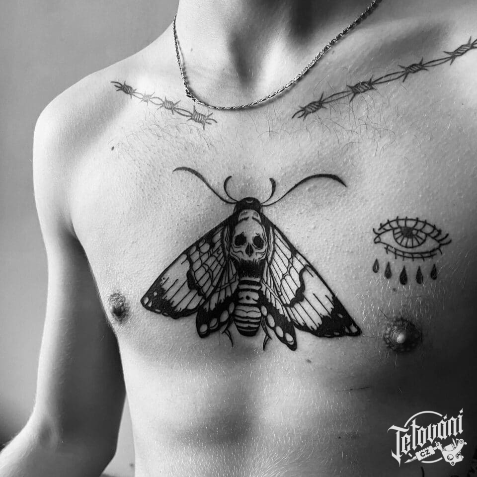 Tetování zvíře, lišaj smrtihlav na hrudi