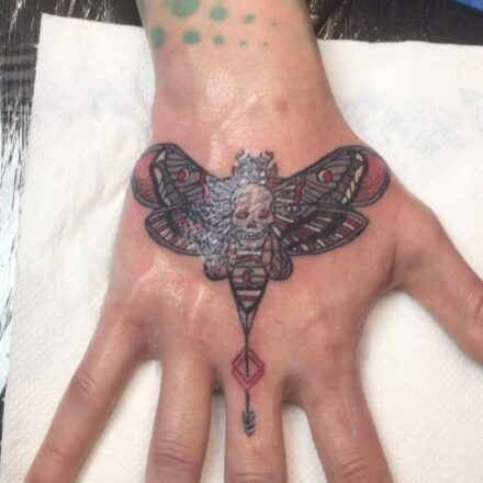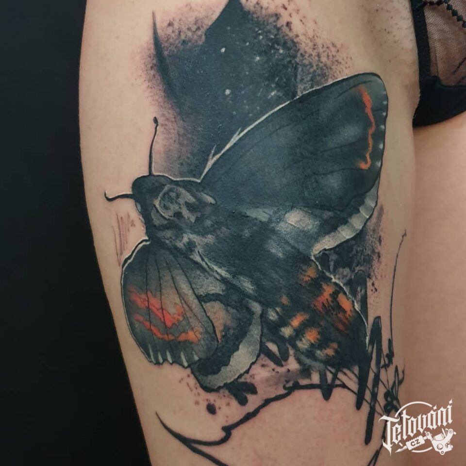 Tetování zvíře, lišaj smrtihlav na stehně