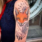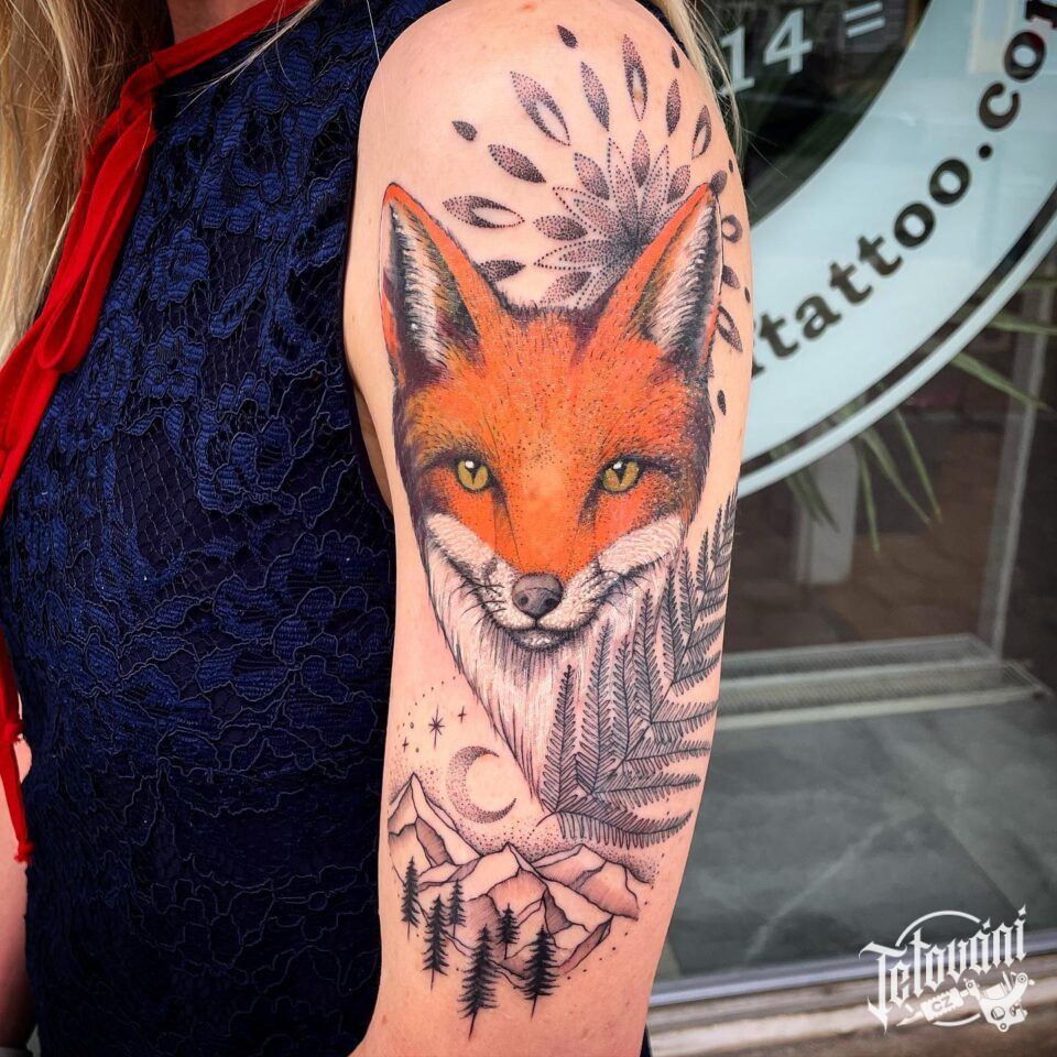 Tetování zvíře, liška a mandala na rameni