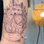 Tetování zvíře liška, květiny na rameno
