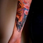 Tetování zvíře liška, květiny, tvary na předloktí