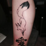 Tetování zvíře, liška na a čínský znak na lýtku