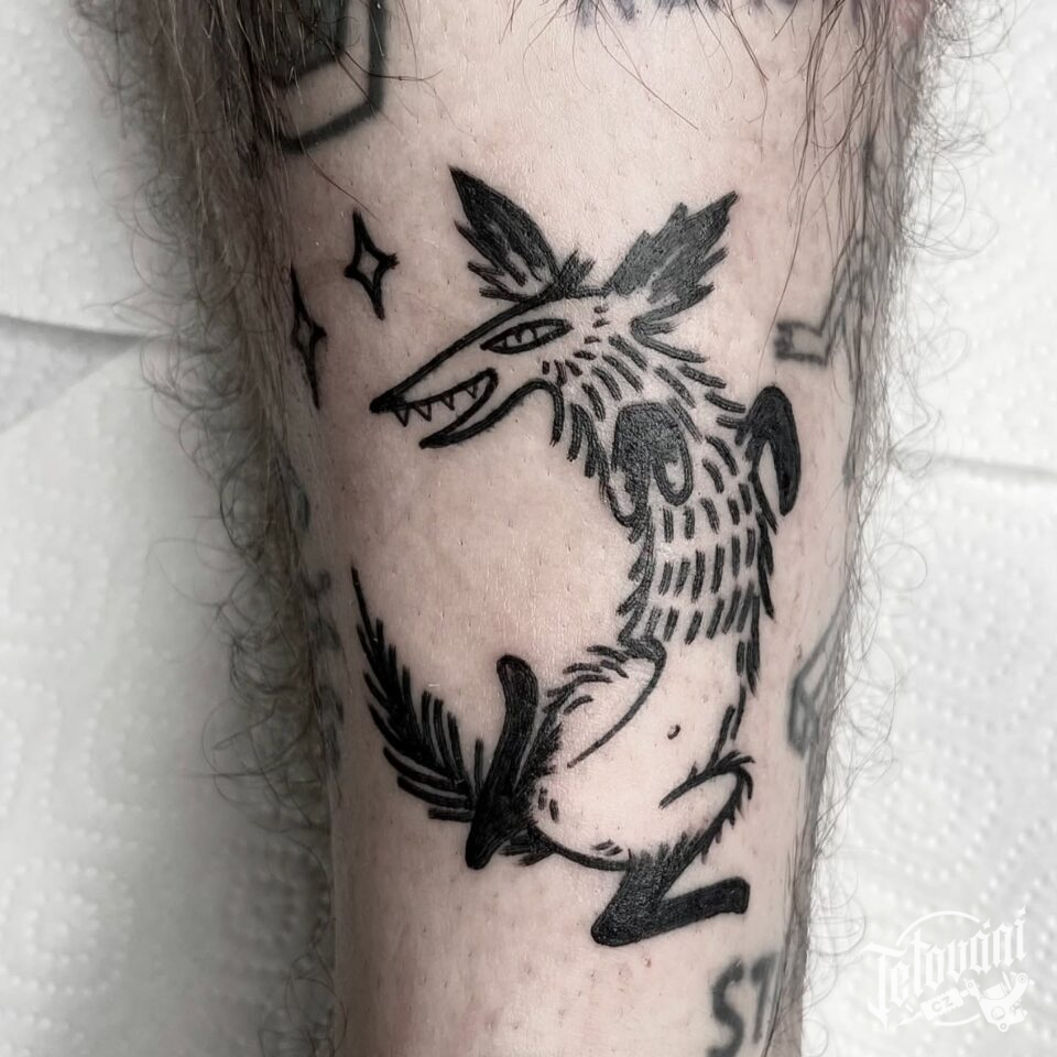 Tetování zvíře, liška na noze
