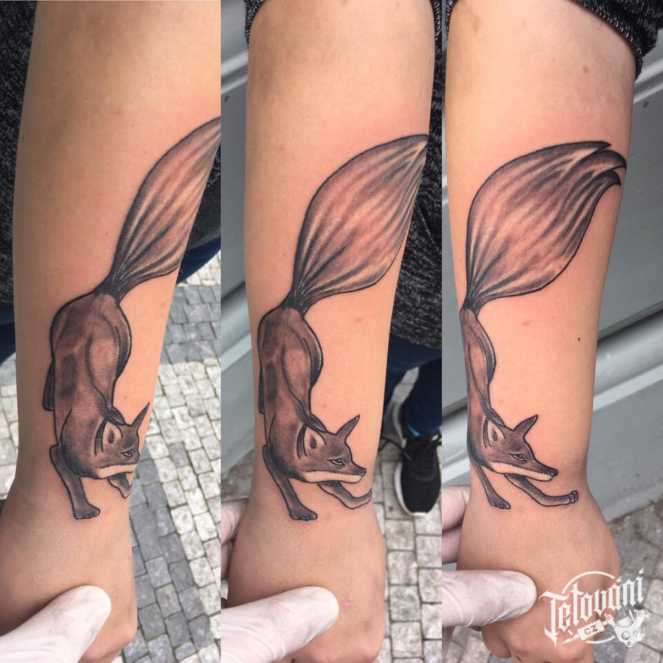 Tetování zvíře liška na předloktí