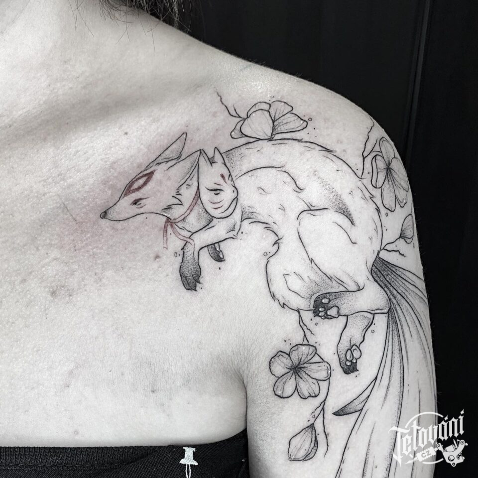Tetování zvíře, liška na rameni