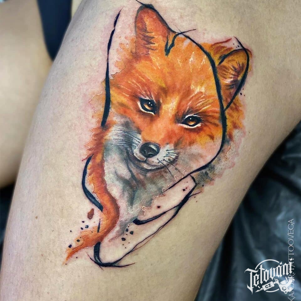 Tetování zvíře, liška na stehně