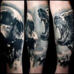 Tetování zvíře, medvěd a lebka na lýtku