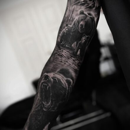 Tetování zvíře medvěd a mládě, symbol rodiny na rameno