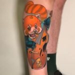 Tetování zvíře, medvěd, červená panda na lýtku