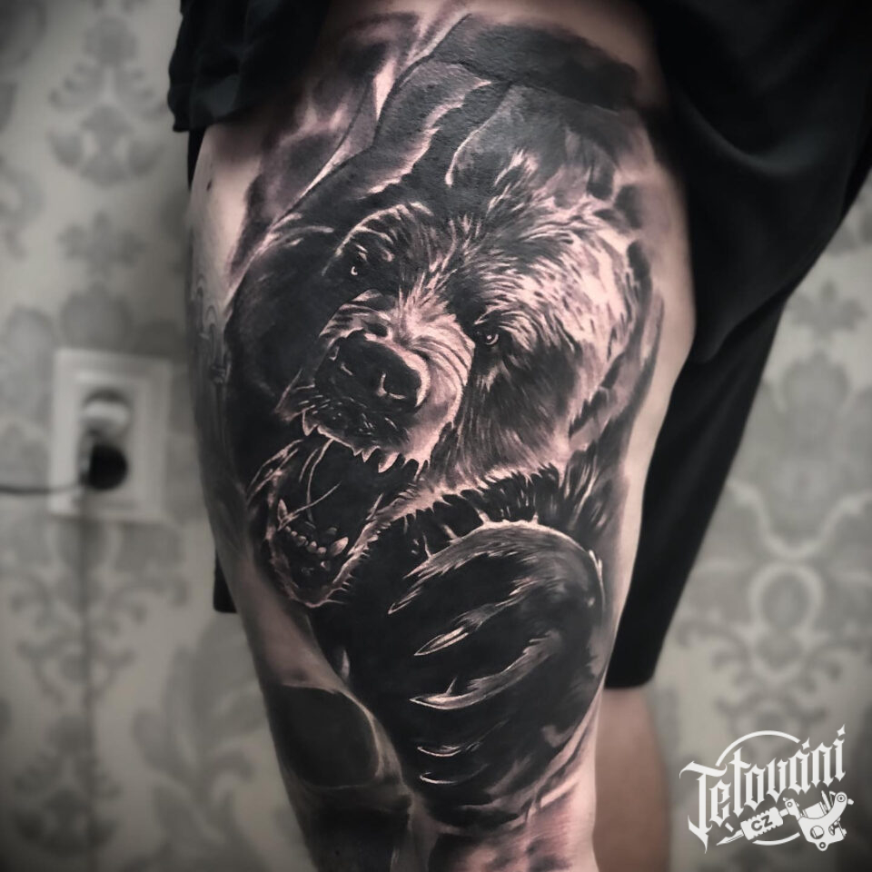 Tetování zvíře medvěd na bok stehna