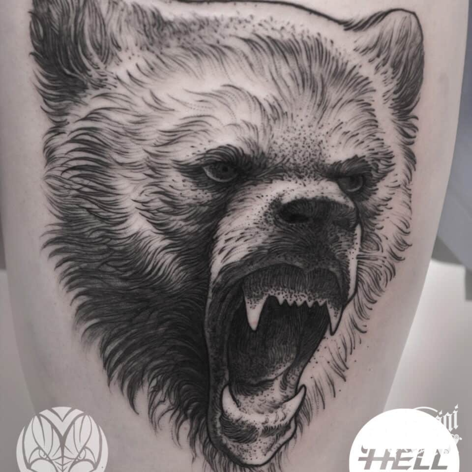 Tetování zvíře medvěd na bok stehna