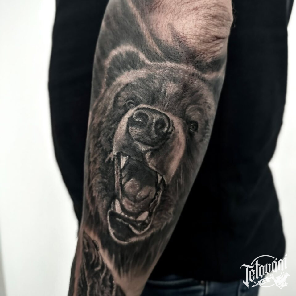 Tetování zvíře medvěd na předloktí