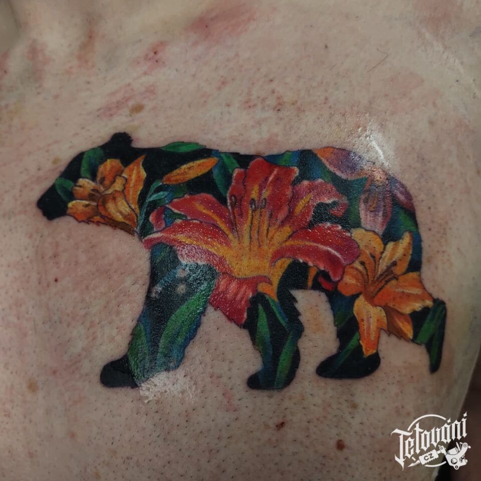 Tetování zvíře medvěd na prso