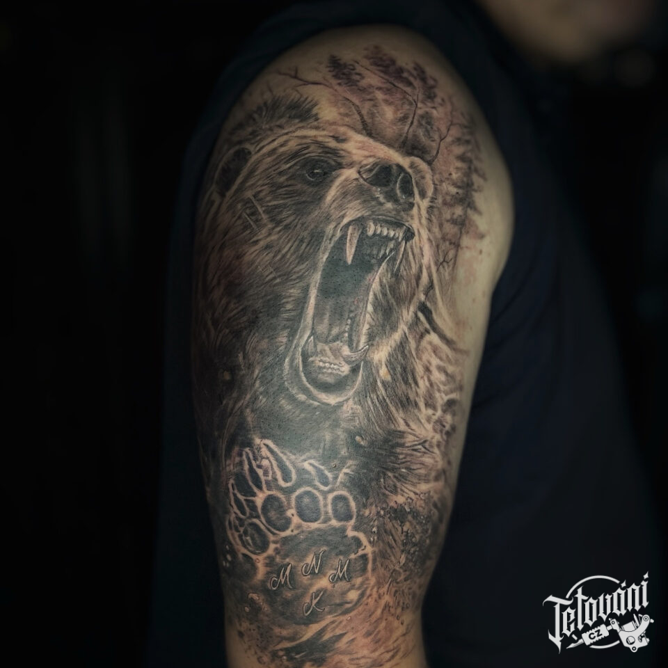 Tetování zvíře, medvěd na rameni