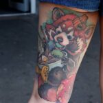 Tetování zvíře, medvěd, panda červená na stehně