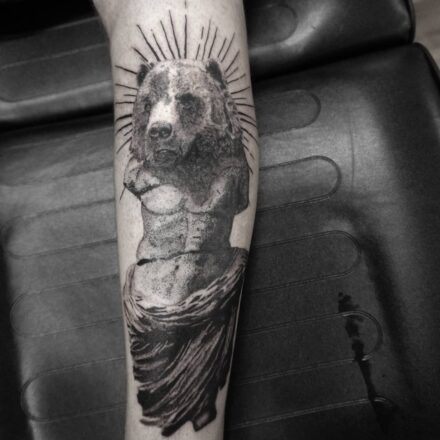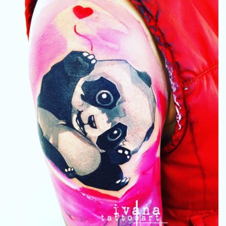 Tetování zvíře medvěd panda, moře, slunce, příroda na lýtko