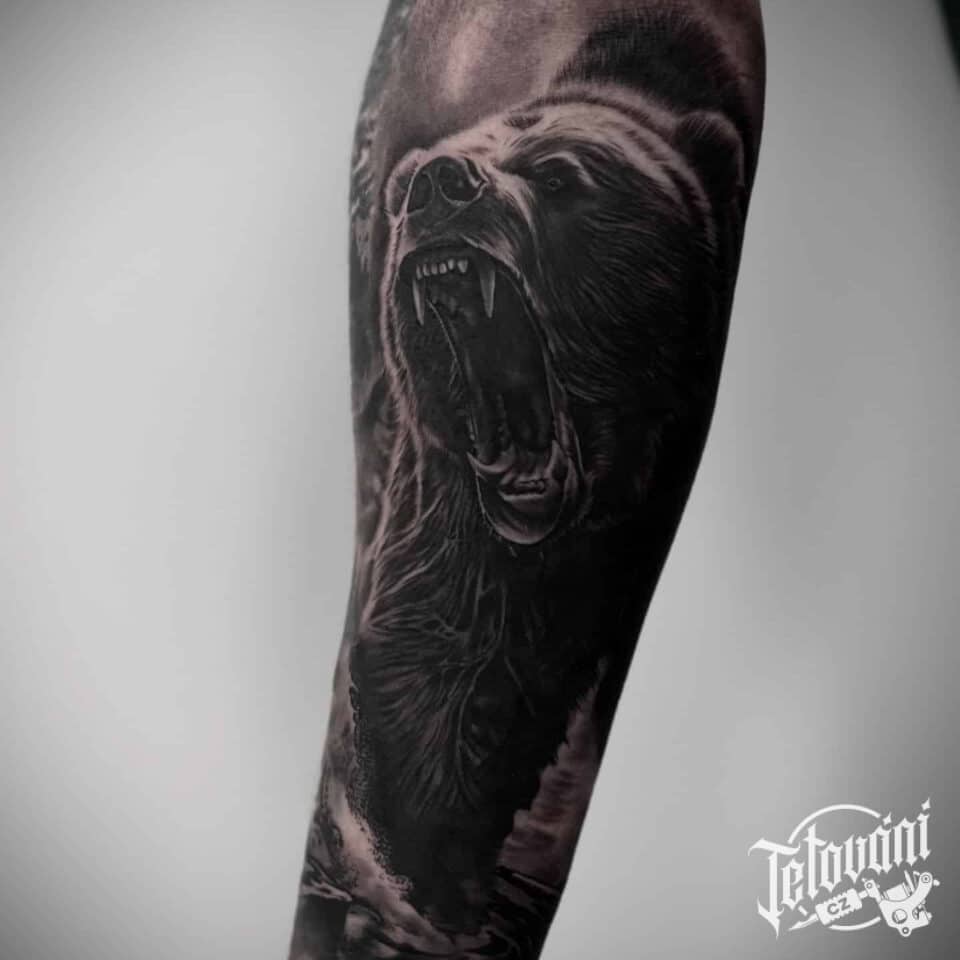 Tetování zvíře medvěd, příroda, les na předloktí
