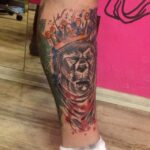 Tetování zvíře, medvěd s korunou na holeni