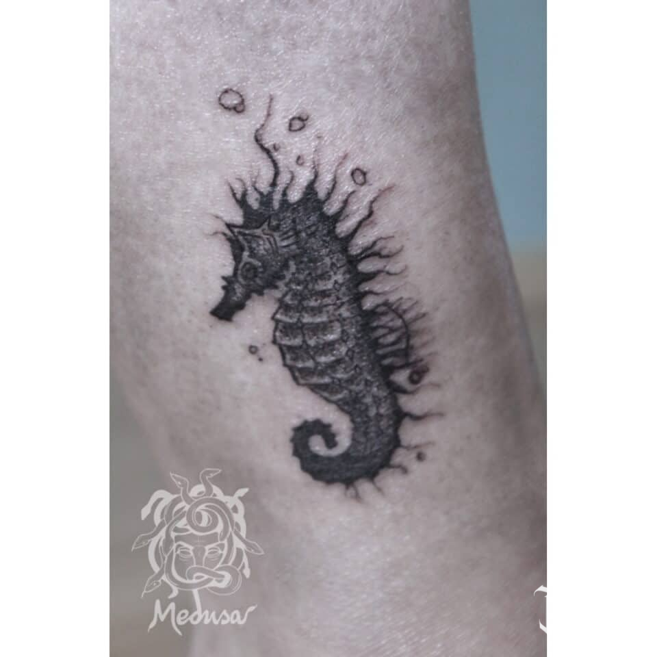 Tetování zvíře mořský koník na lýtko