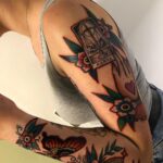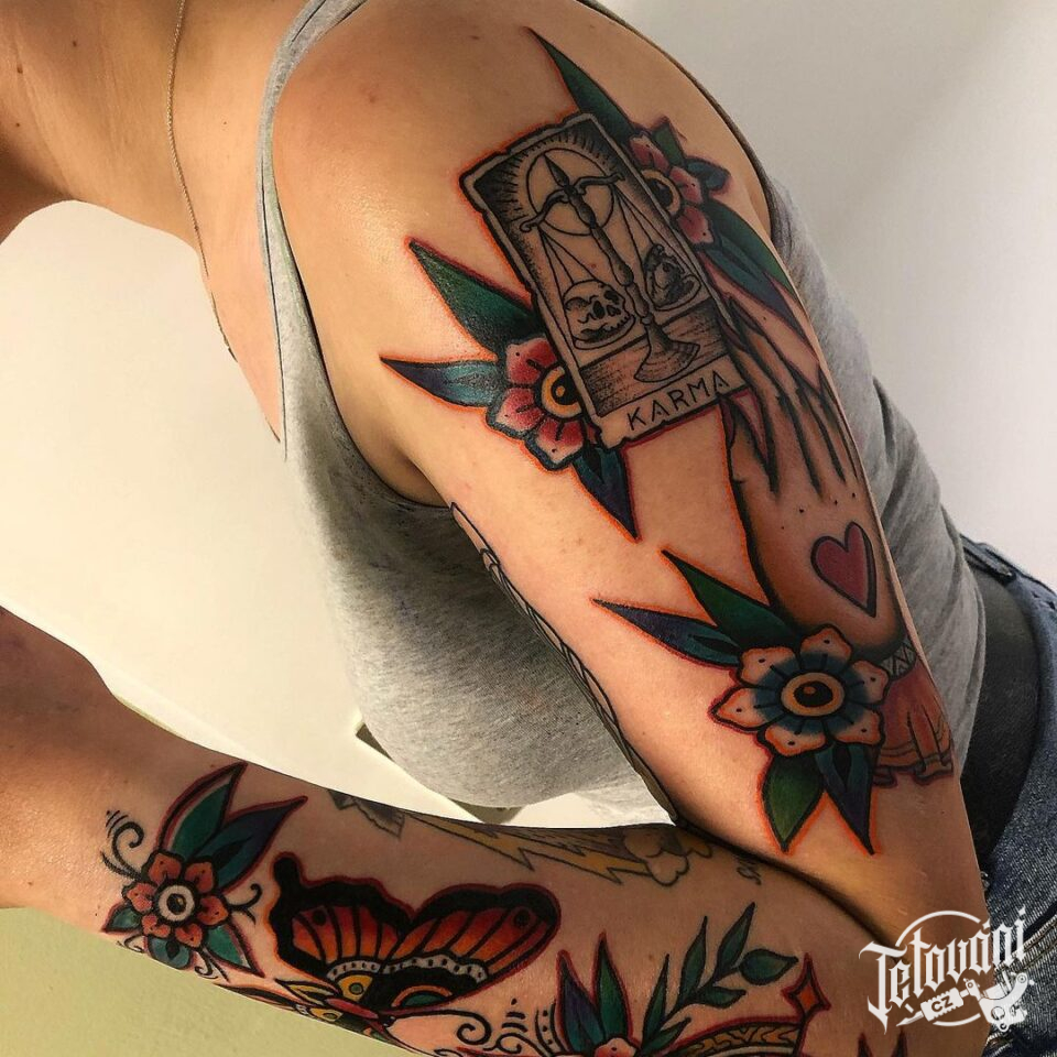 Tetování zvíře, motýl a květiny, rukáv