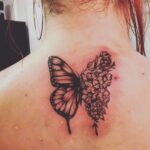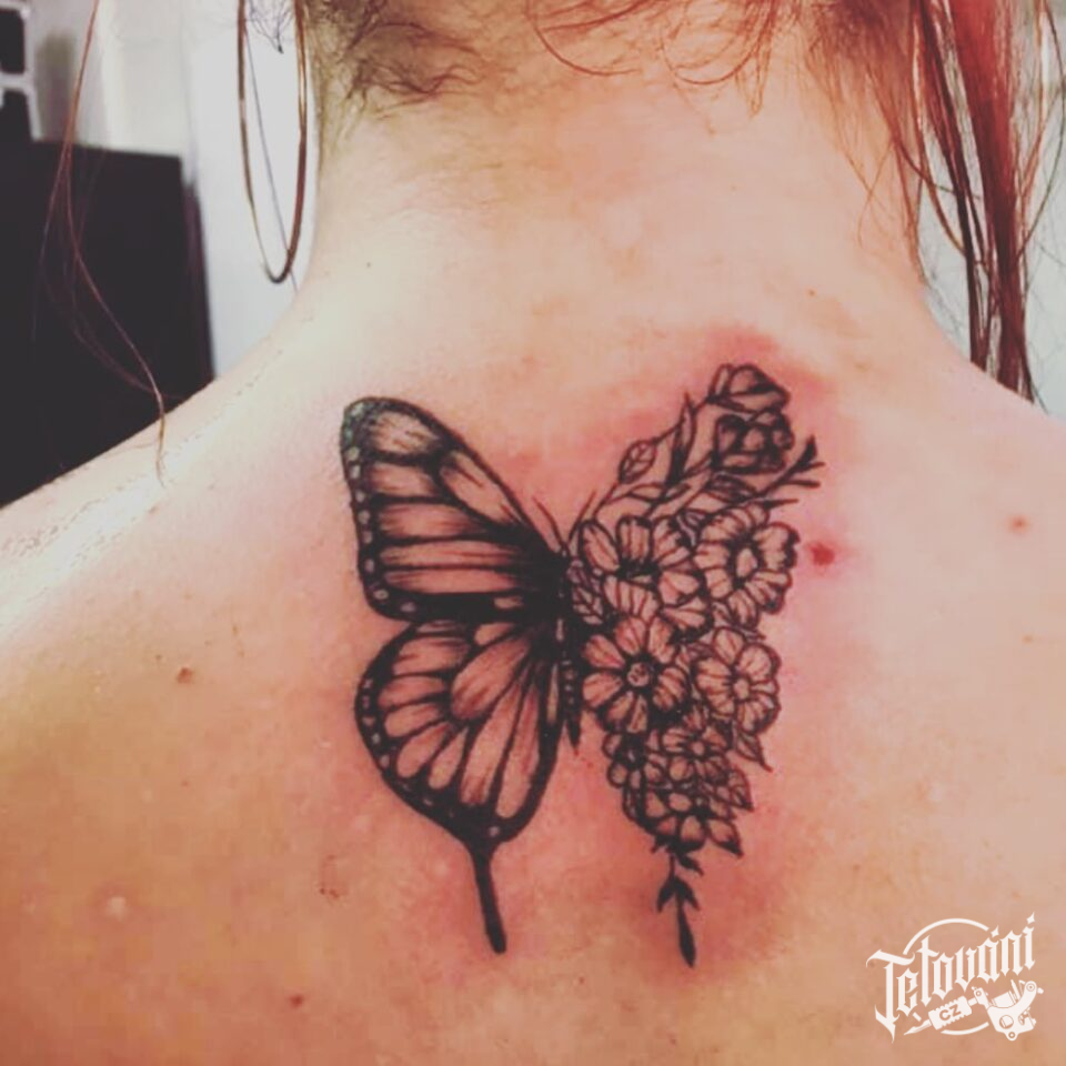 Tetování zvíře motýl a květiny na záda