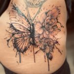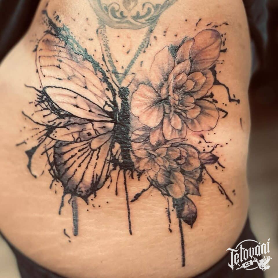 Tetování zvíře motýl, květiny na břicho