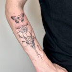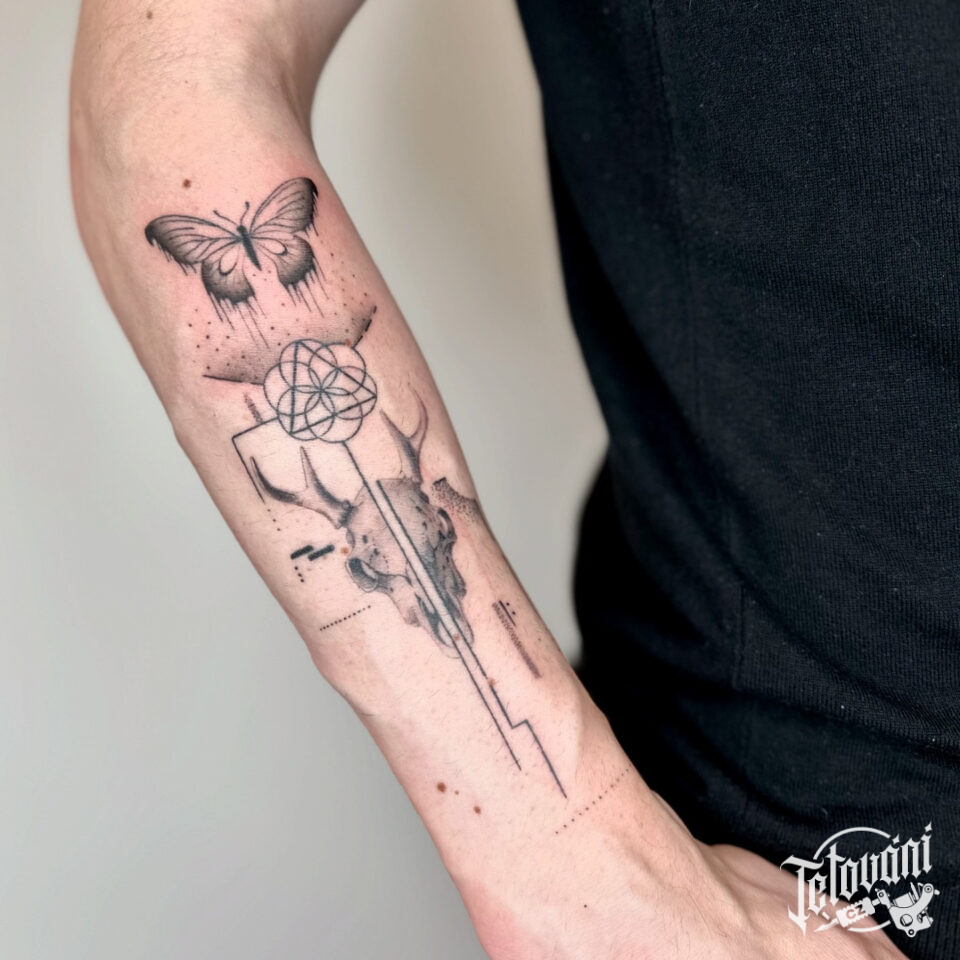 Tetování zvíře motýl, lebka, tvary na předloktí