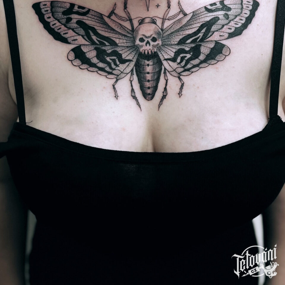 Tetování zvíře, motýl lišaj smrtihlav na hrudi