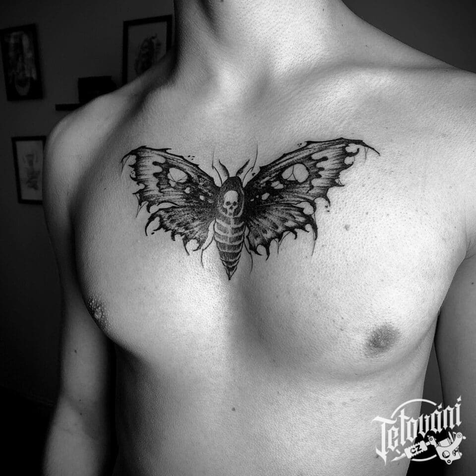 Tetování zvíře, motýl, lišaj smrtihlav na hrudi