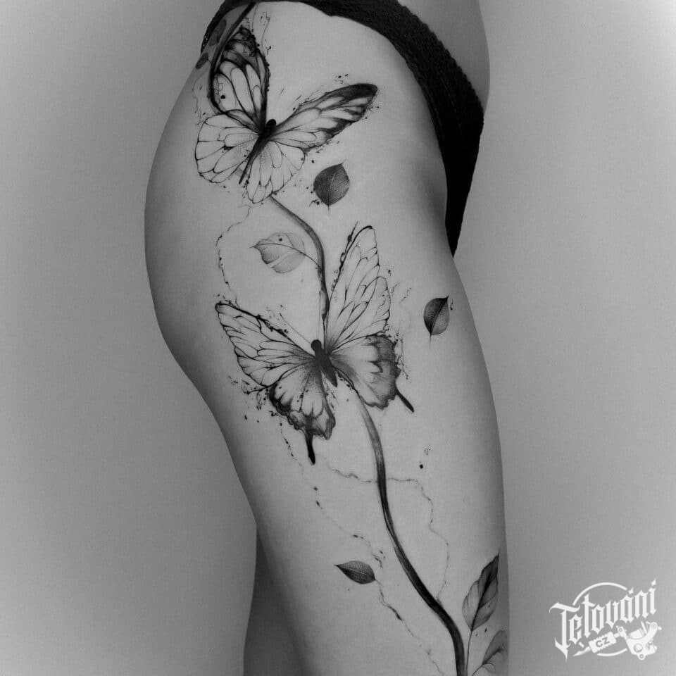 Tetování zvíře motýl na bok stehna