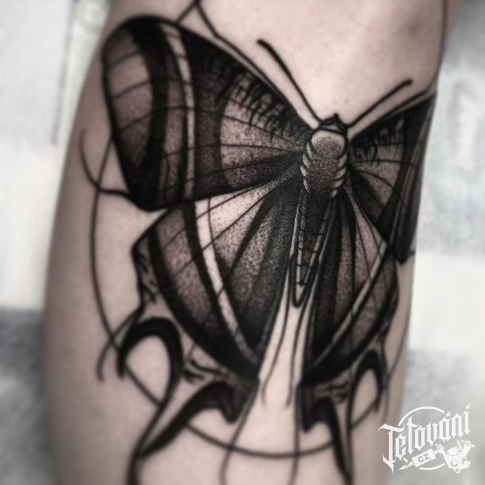 Tetování zvíře motýl na holeň