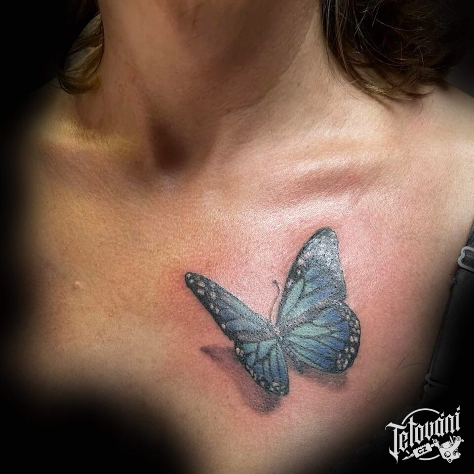 Tetování zvíře, motýl na hrudi