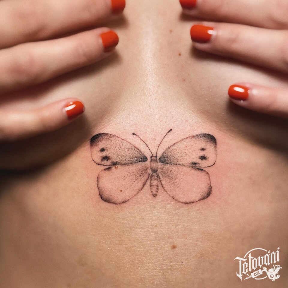 Tetování zvíře motýl pod prsa