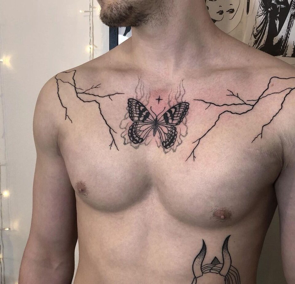 Tetování zvíře motýl na hrudníku