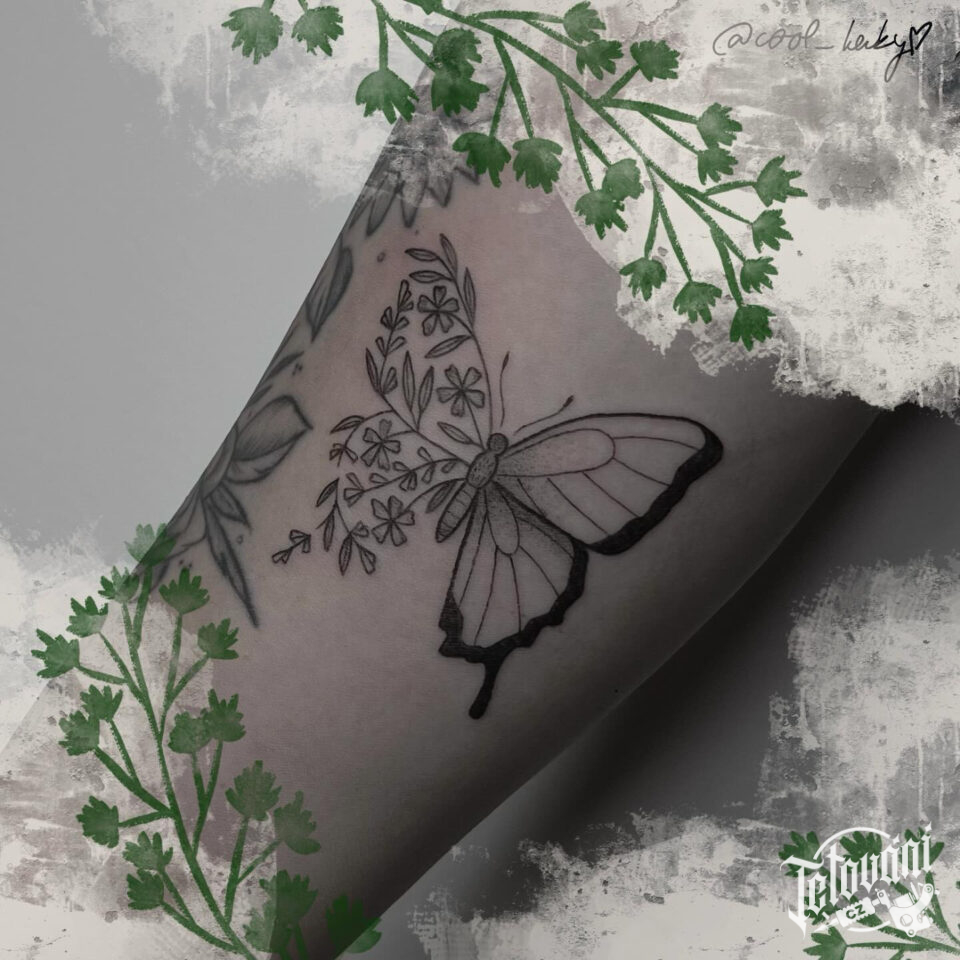 Tetování zvíře, motýl na lýtku