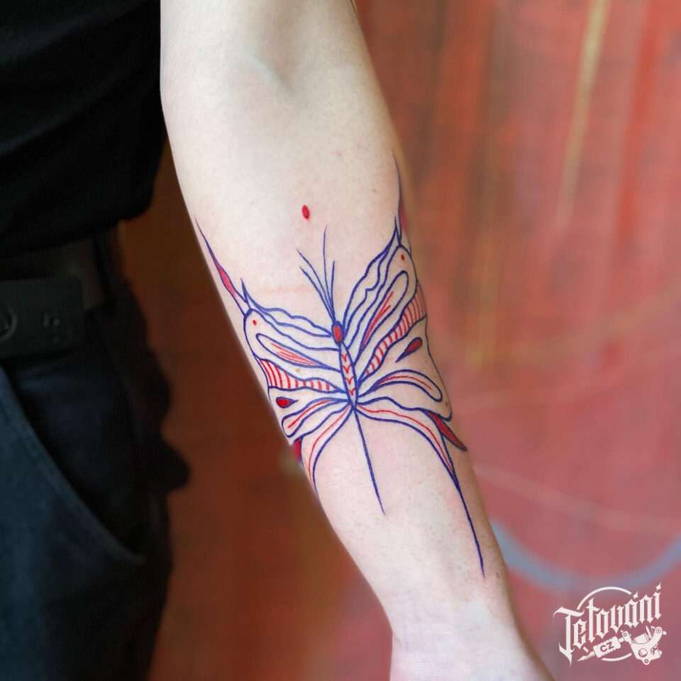 Tetování zvíře motýl na předloktí
