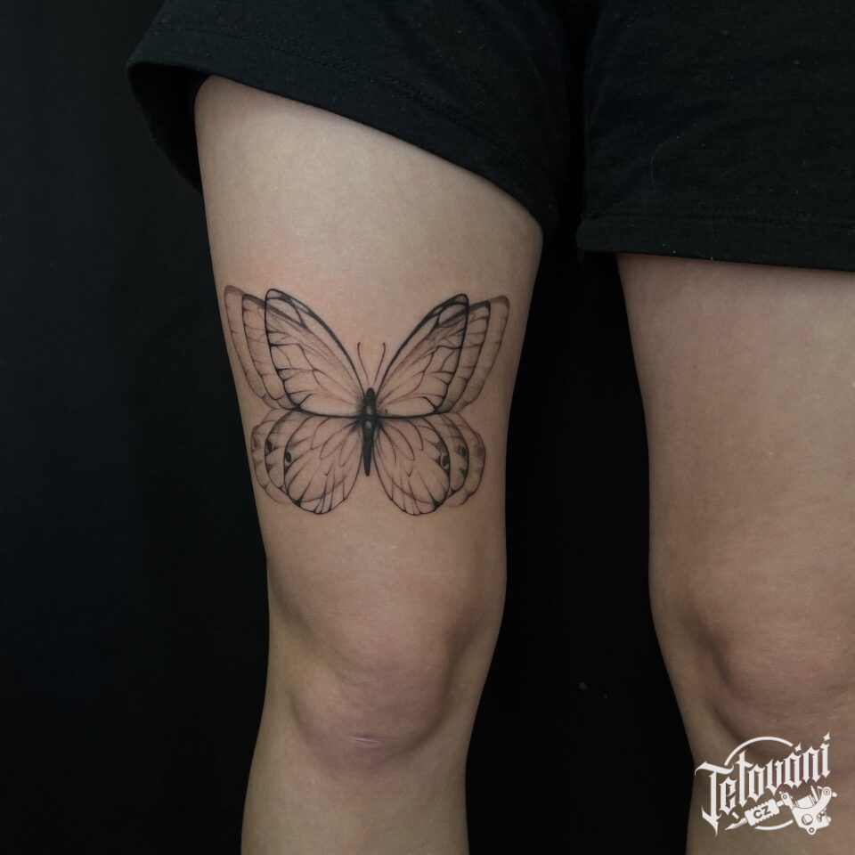 Tetování zvíře, motýl na stehně