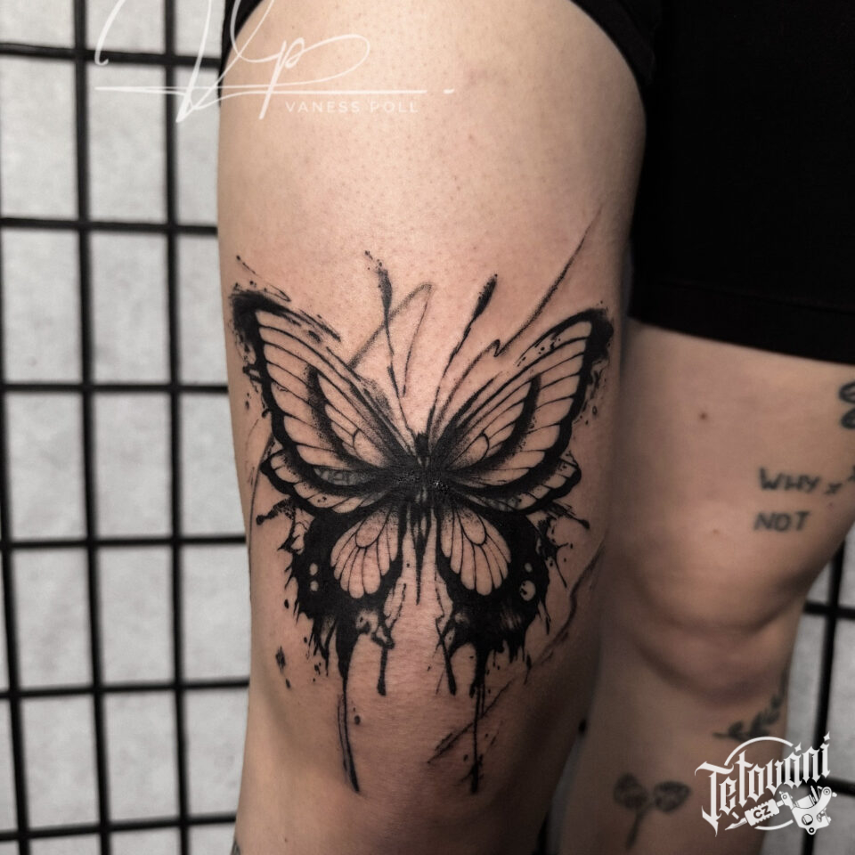 Tetování zvíře, motýl na stehně