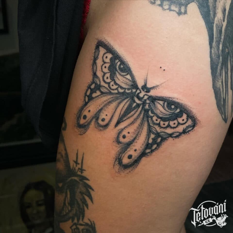 Tetování zvíře motýl na stehno