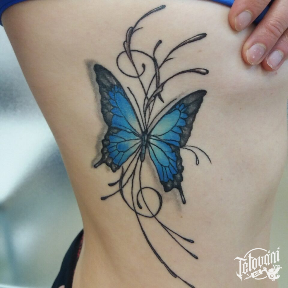 Tetování zvíře motýl na žebra