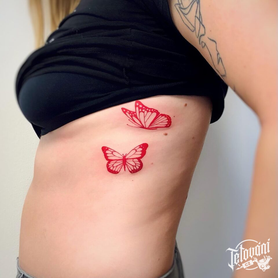 Tetování zvíře motýl na žebra