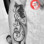 Tetování zvíře, motýl s ornamentem na lýtku
