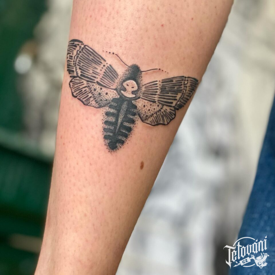 Tetování zvíře, motýl, smrtihlav na předloktí