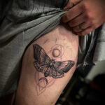 Tetování zvíře, motýl, smrtihlav na stehně