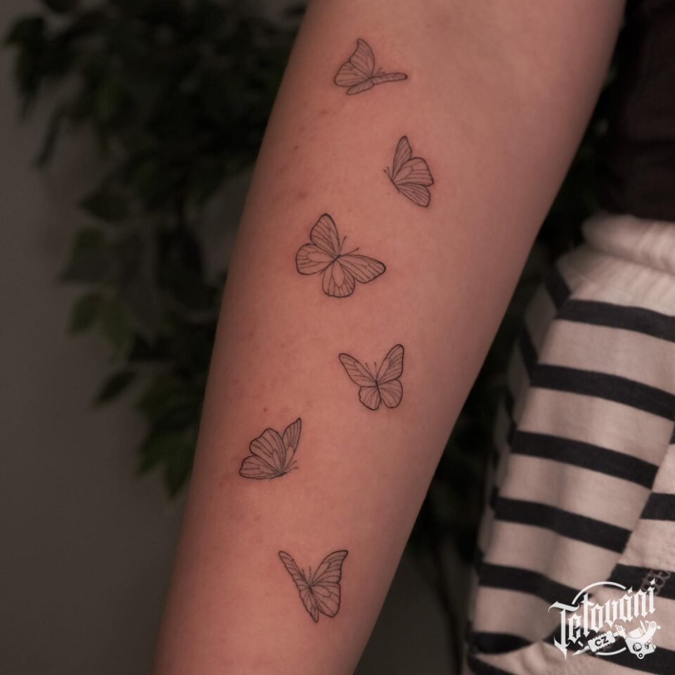 Tetování zvíře motýli na předloktí
