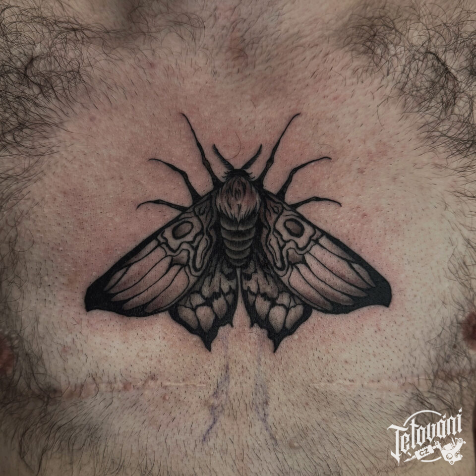 Tetování zvíře, můra na hrudi