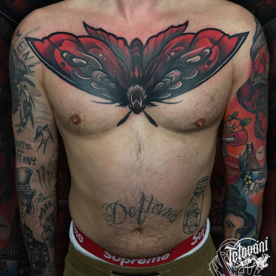 Tetování zvíře, můra na hrudi