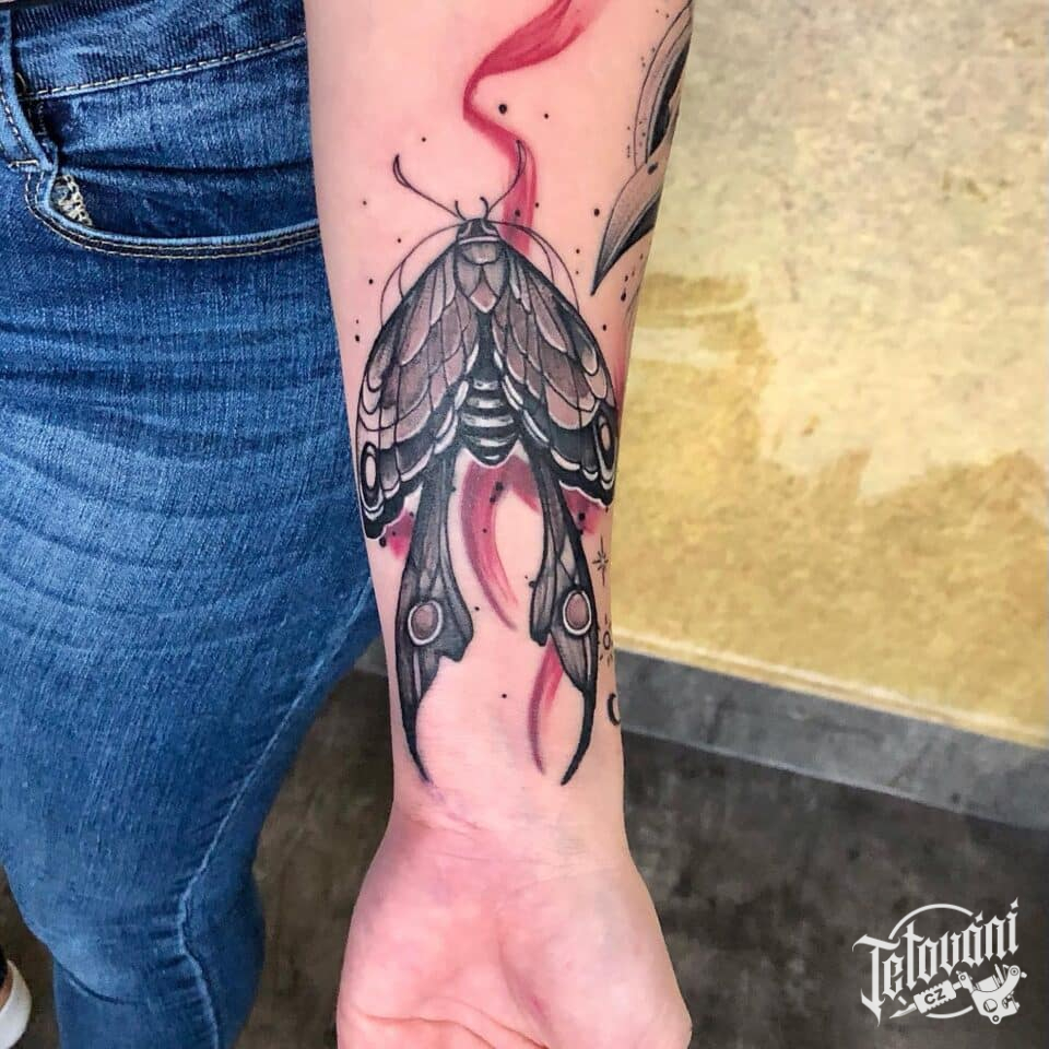 Tetování zvíře můra na předloktí