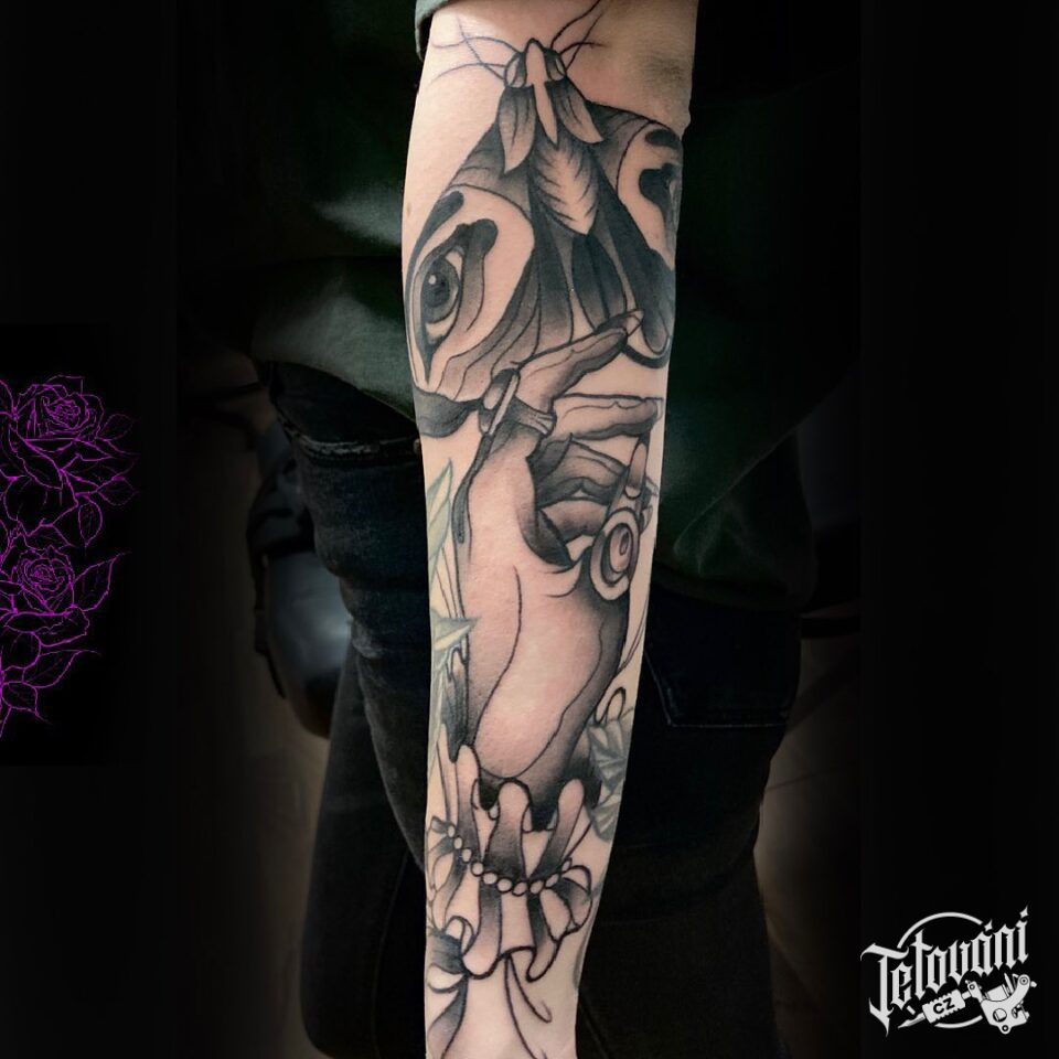 Tetování zvíře můra, ruka na předloktí